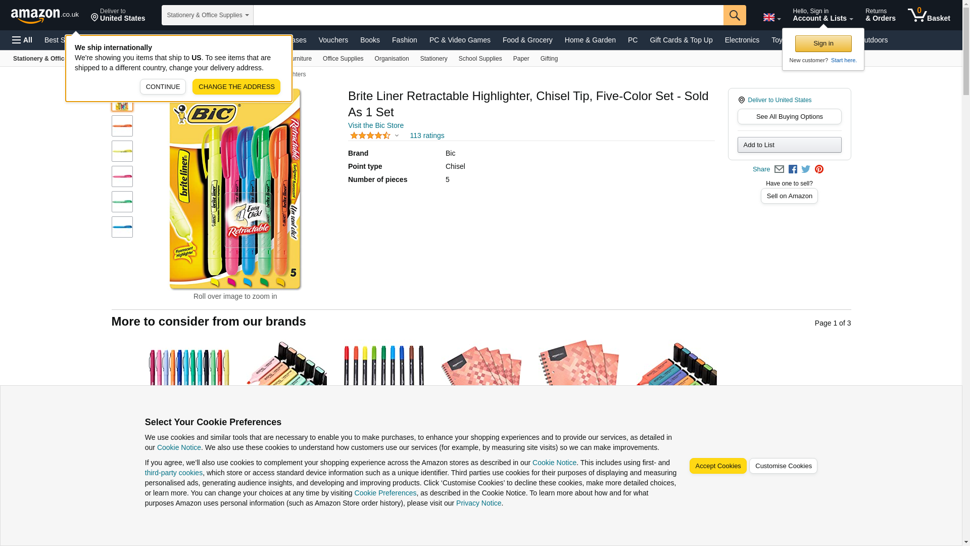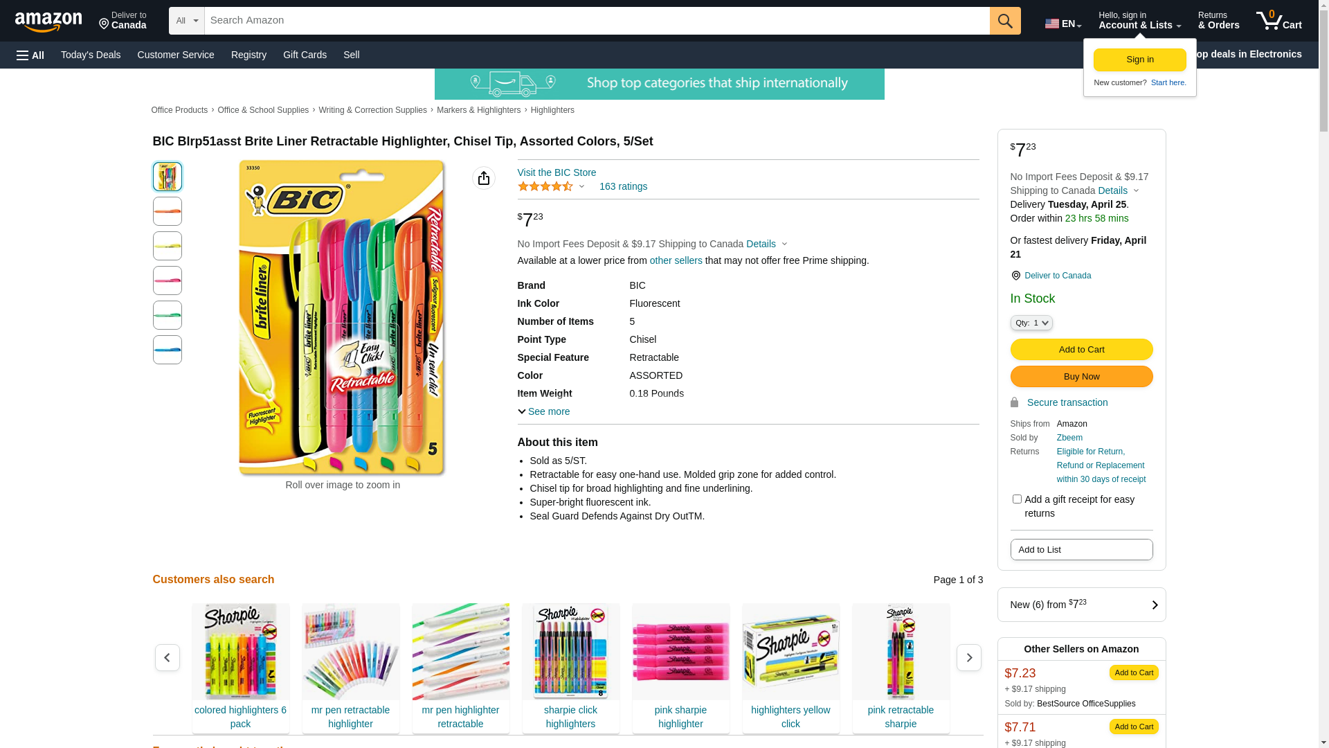 Retractable for easy one-hand use. Molded grip zone for added control. Chisel tip for broad highlighting and fine underlining. Super-bright fluorescent ink. Seal Guard Defends Against Dry Out. Pocket clip. Color(s): Assorted; Tip Type: Chisel; Assortment: Blue; Green; Orange; Pink; Yellow; Grip Type: Molded. This supplier will be closed on 11/24, 11/25, 12/23, 12/26, 1/2 for the holidays. The shipping cut off is UPS's cut off of 12/15 to try and have the products delivered by Christmas.