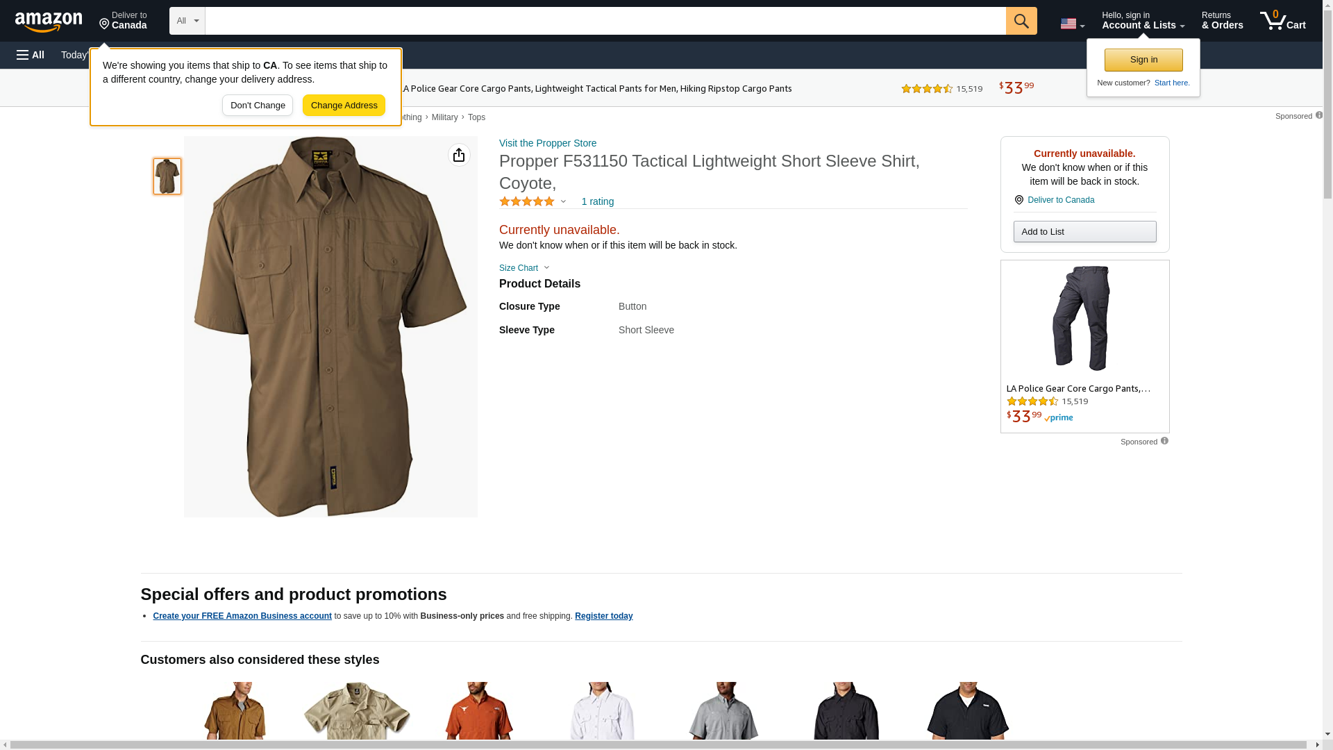 Propper F531150 Tactical Lightweight Short Sleeve Shirt, Coyote,