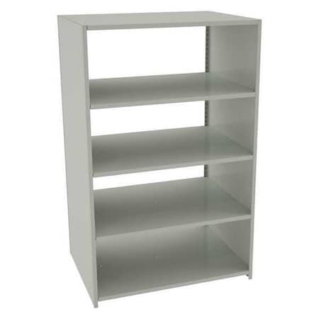 Boltless Shelving, Low Profile, Overall Depth 36 in, Overall Height 78 in, Overall Width 48 in, Shelf Gauge 14 ga, Shelf Adjustment Increments 1 1/2 in, Steel, Steel, Steel, (2) Uprights, (8) Shelf Reinforcements, Shelf Supports, Includes Decking Yes, 700 lb, Whole Unit Load Capacity 3,500 lb, Starter, Closed, Post Gauge 18 ga, Number of Shelves 5, Maximum Post Load Capacity 3,500 lb with Beams Evenly Spaced at 24 in, Powder Coated, Medium-Duty, Light Gray