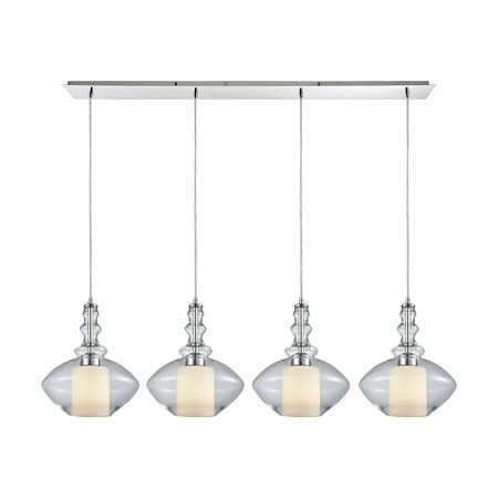 56500/4LP ELK Lighting Alora 4-Light Linear Pendant Fixture In Chrome With Clear And Opal White Glass