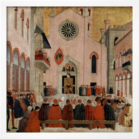 <ul> <li>Title: St Vincent Ferrer Preaching before a Pope by Bartolomeo Degli Erri</li> <li>Product Type: Framed Art Print</li> <li>Framed in SOHO White</li> <li>Arrives ready-to-hang for fast, simple installation</li> <li>Framed Size: 26x26 in.</li> <li>Handcrafted in the USA</li> </ul>