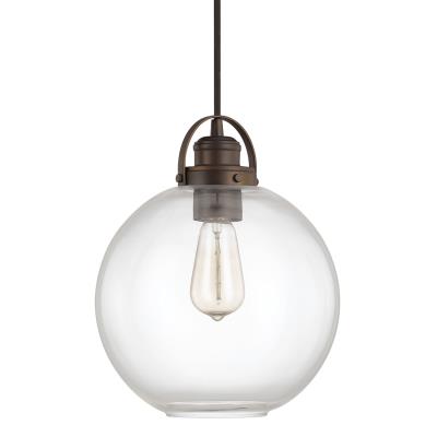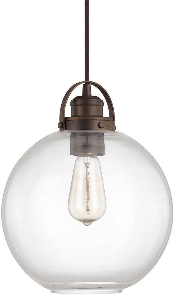 Capital Lighting 4641BB-136 Dean Urban/Industrial Clear Glass Globe Pendant, 1-Light 100 Watt, 13" H x 10" W, Burnished Bronze