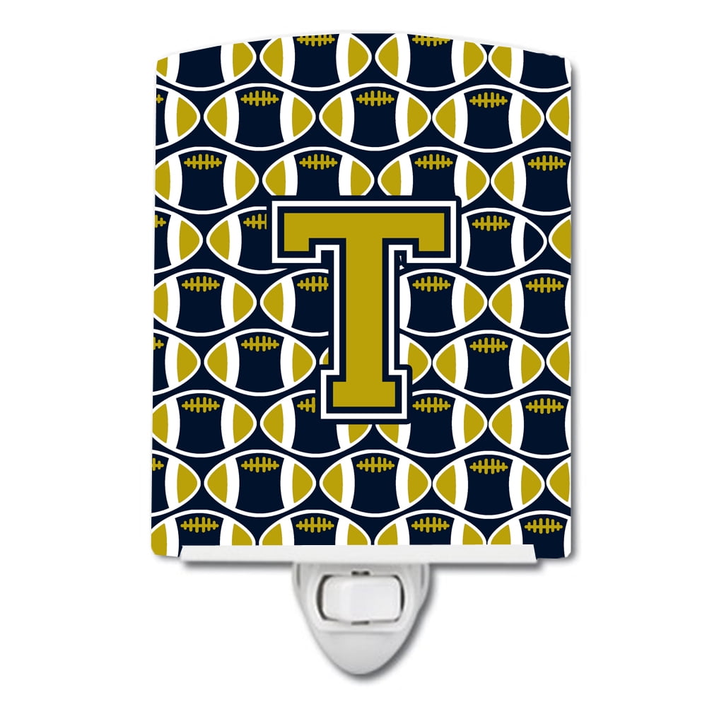Carolines Treasures CJ1074-TCNL Letter T Football Blue & Gold Ceramic Night Light