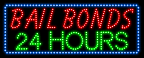 The Sign Store L100-7543 Bail Bonds 24 Hours Animated LED Sign - Blue, Red & Green - 13 x 32 x 1 in.