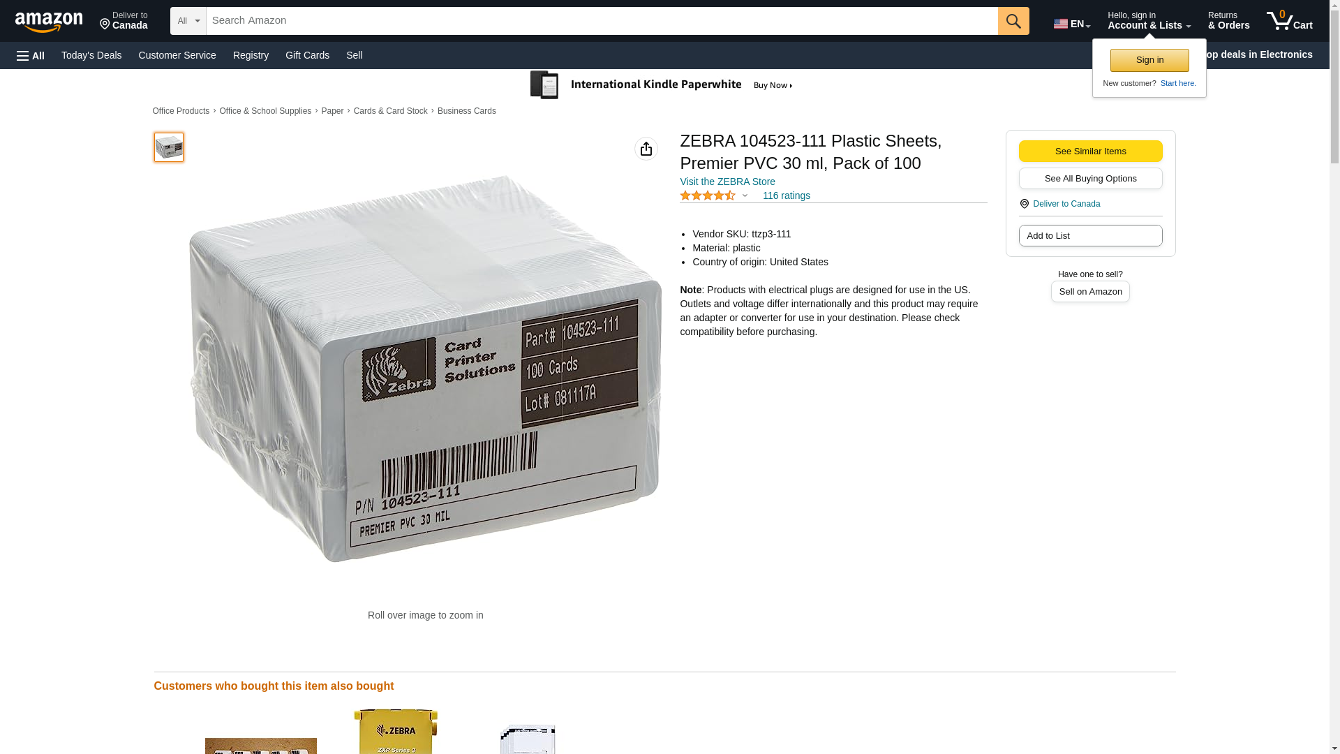 ZEBRA 104523-111 Plastic Sheets, Premier PVC 30 ml, Pack of 100