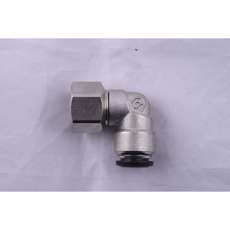 Push to Connect Tube Fitting - Nickel Plated Brass w/ Plastic Release Ring - Female Elbow (Swivel) - 8mm Tube OD x 3/8" BSPP Female