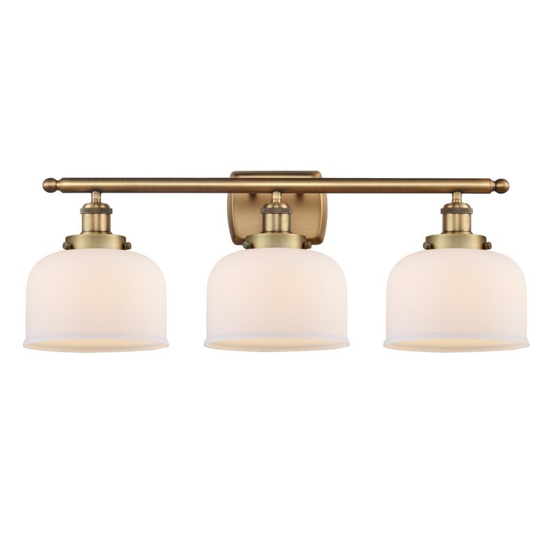 INNOVATIONS LIGHTING 916-3W-BB-G71-LED BALLSTON LARGE BELL 3 LIGHT 26 INCH MATTE WHITE GLASS VANITY LIGHT, BRUSHED...