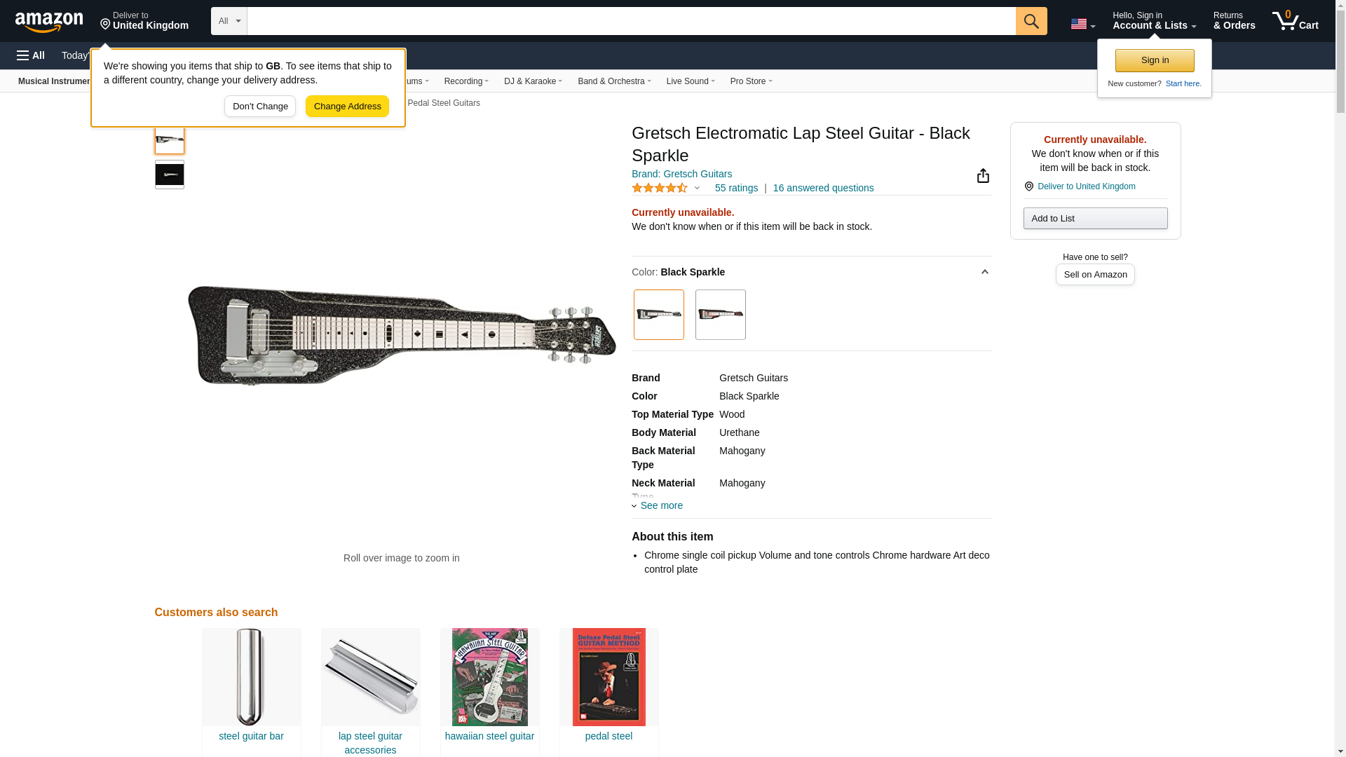 Gretsch Electromatic Lap Steel Guitar - Black Sparkle