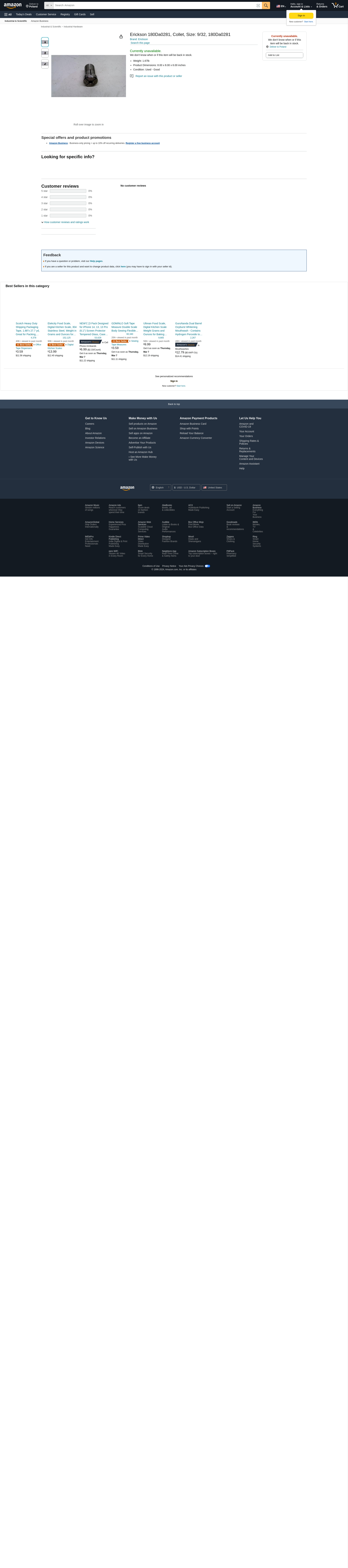 Erickson 180Da0281, Collet, Size: 9/32,