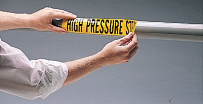 Self-Sticking Vinyl Pipe Markers, Domestic Hot Water Return, Black/Yellow, 7 x 7 (10 Units)