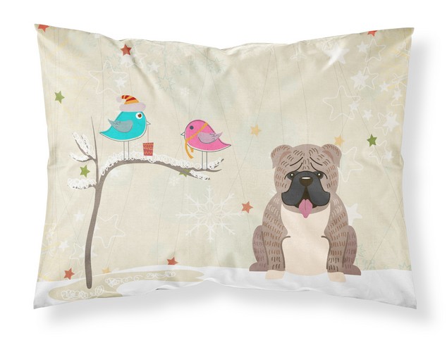 Carolines Treasures BB2598PILLOWCASE Christmas Presents Between Friends English Bulldog Grey Brindle Fabric Standard Pil
