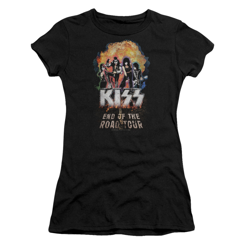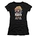 Trevco KISS257-JS-1 Kiss & Boom Print Juniors Sheer Cap Sleeve T-Shirt, Black - Small