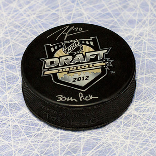 AJ SportsWorld PEAT11705A Tanner Pearson 2012 NHL Draft Day Puck Autographed With 30Th Pick Inscription