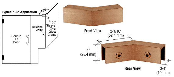 C.R. LAURENCE S0GC135ABR CRL Antique Brass 135 Degree "Sleeve Over" Glass Clamp