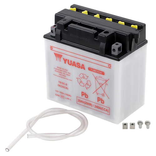 Yuasaÿbatteries are the industry standard and are engineered to protect against corrosion, withstand vibration and deliver high cranking power.ÿ The Yuasa Yumicron gives you a powerful advantage over standard conventional batteries.ÿ Its high-tech separators allow for two extra plates per cell providing a 30% increase in cranking power.ÿ A great choice for heavily accessorized machines or high compression engines. Suitable for many applications including motorcycles and mowers Sealed posts resist corrosion for long life Polypropylene cover resists gas, oil and impacts Heat-sealed and bonded fabrication resists seepage > Please note: Conventional batteries are shipped dry < ÿÿÿÿÿ Acidÿsold separately - Item # SO-ACID (21oz)ÿÿÿÿÿ ÿ ÿ ÿ</BR>Additonal Fitment:</BR>zzzz-zzzz YUASA zzzz</BR>zzzz-zzzz zzzz zzzz