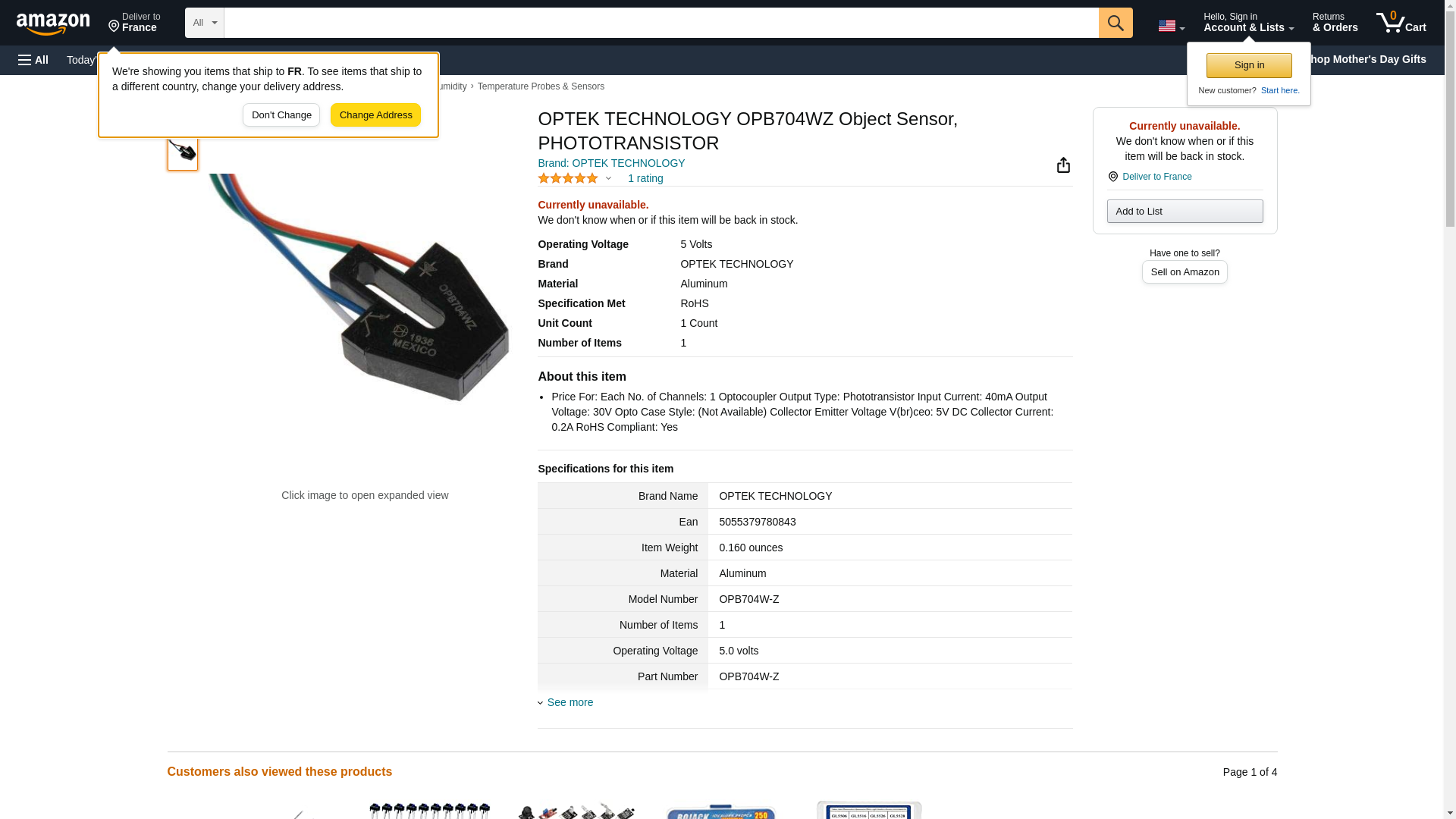 OPTEK TECHNOLOGY OPB704WZ Object Sensor, PHOTOTRANSISTOR