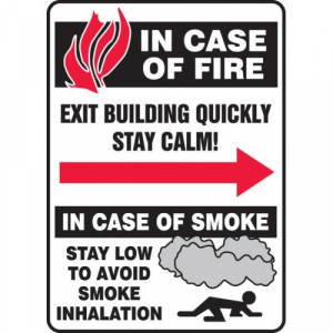 In Case Of Fire Exit Building Quickly Stay Calm! In Case Of Smoke Stay Low To Avoid Smoke Inhalation (Arrow Right) (W/Graphic) 14" x 10" - MFEX501XT - Jendco Safety Supply