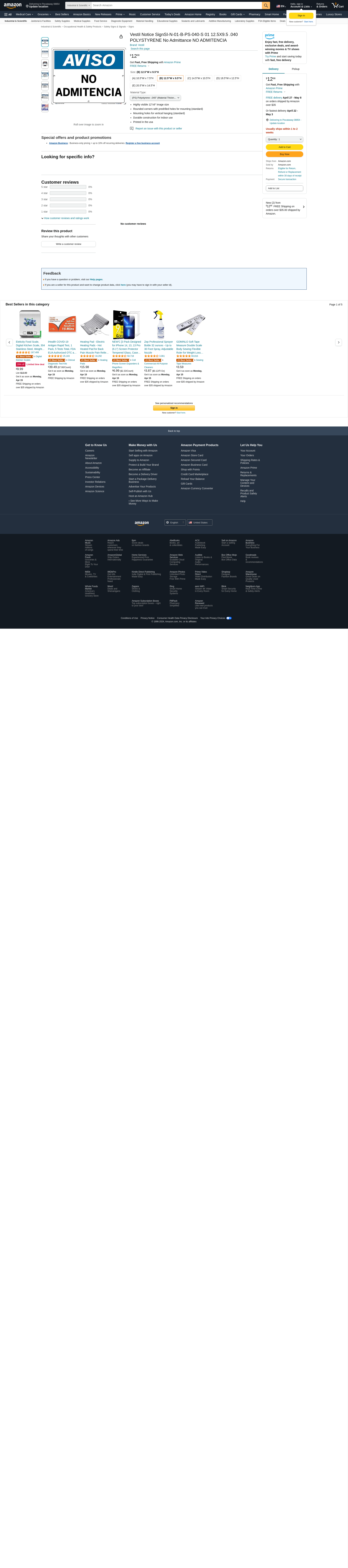 Vestil SI-N-01-B-PS-040-S Spanish Sign-Notice-01 12.5" X 9.5 .040" Polystyrene" Thickness | MROSupply.com