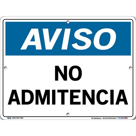 Vestil Notice SignSI-N-01-B-PS-040-S 01 12.5X9.5 .040 POLYSTYRENE No Admittance NO ADMITENCIA