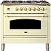 Ilve UPN90FDMPALP Nostalgie Series 36 Inch Dual Fuel Convection Freestanding Range, 5 Sealed Brass Burners, 3.55 cu.ft. Total Oven Capacity in Antique White, Brass Trim (Liquid Propane)