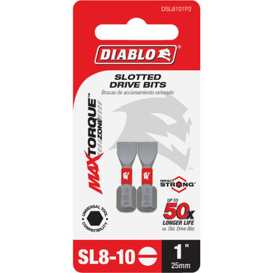 Diablo 1 in. SL8-10 Slotted Drive Bits (2-Pack)
