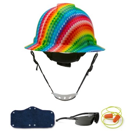 Full Brim Hard Hat, Cust. Rainbow Diamonds Design Safety Helmet