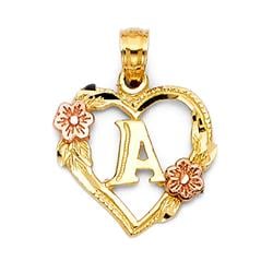 Precious Stars PT-2052-A 14K Two Tone Gold Flower & Heart-Shaped Initial A Pendant