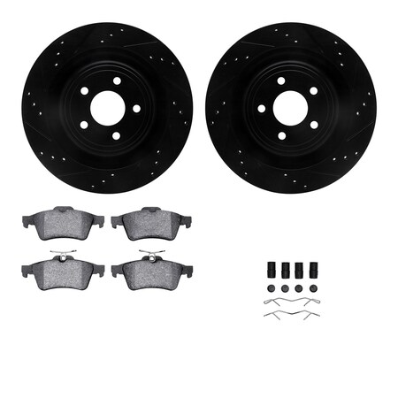 Dynamic Friction Company Rear Brake Rotors-Drilled and Slotted-Black with 5000 Euro Ceramic Brake Pads includes Hardware 8612-20011