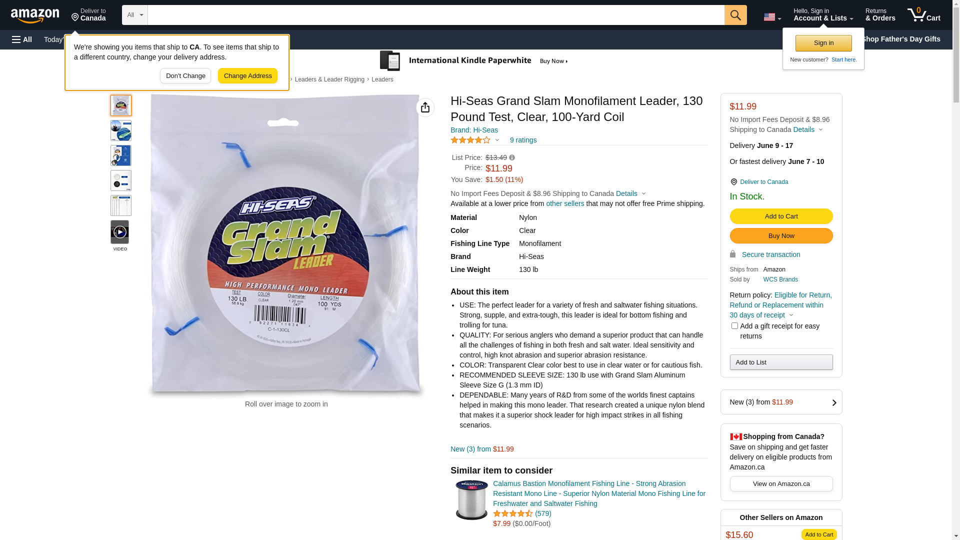 Hi-Seas Grand Slam Monofilament Leader, 130 Pound Test, Clear, 100-Yard Coil