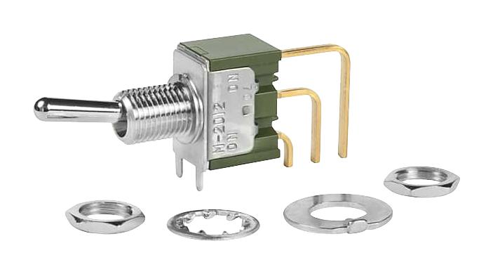 | Feature | <b>Price For:</b> Pack of 100 <b>Manufacturer</b>: NKK Switches <b>Product Category</b>: Toggle Switches <b>RoHS</b>: <b>Contact Form</b>: SPDT <b>Switch Function</b>: ON - ON <b>Mounting Style</b>: Through Hole <b>Termination Style</b>: Solder Pin <b>Voltage Rating AC</b>: 28 V <b>Voltage Rating DC</b>: 28 VDC <b>Power Rating</b>: 0.4 VA <b>Bushing Size</b>: 1/4-40 <b>Actuator</b>: Bat <b>Terminal Seal</b>: Sealed <b>Contact Plating</b>: Gold <b>Brand</b>: NKK Switches |