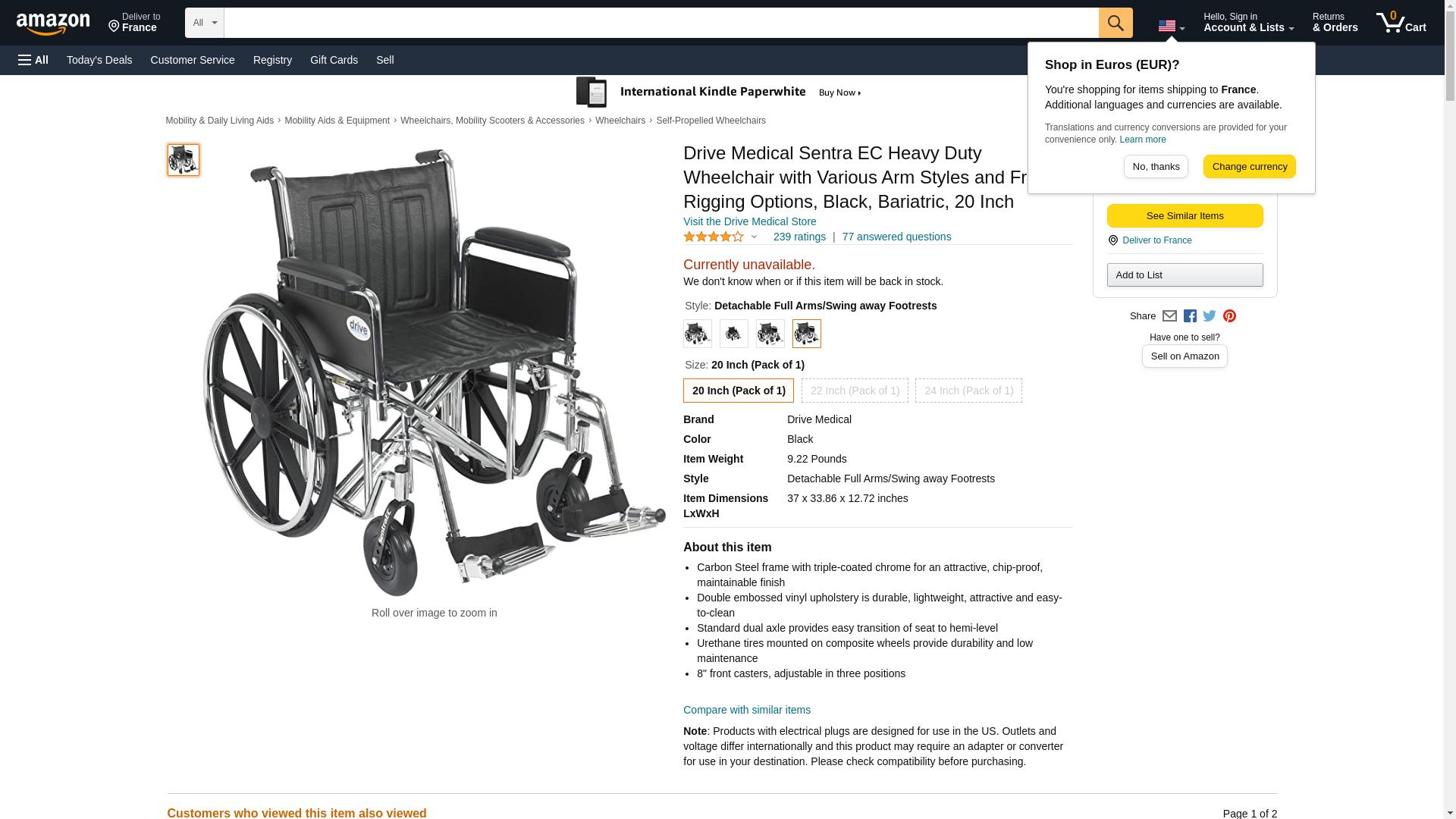 Drive Sentra EC Heavy Duty Wheelchair, Full Arms, Footrest, 24" - Medex Supply
