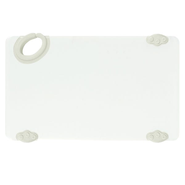 Winco CBN-1218WT, 12x18x1/2" Rectangular Cutting Board with White Rubber Grip Hook, Plastic Chopping Board (White)