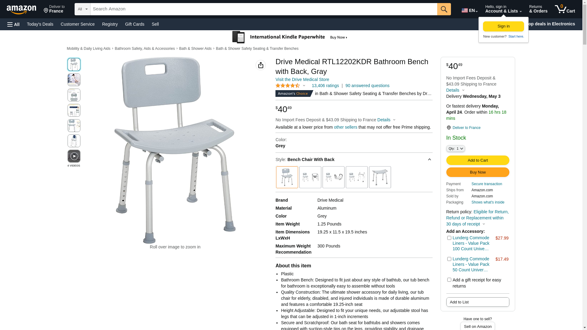 Drive Medical RTL12202KDR Deluxe Bath Chair, Gray, Aluminum Frame, Corrosion Proof, Height Adjustable Suction-Type Tip Legs