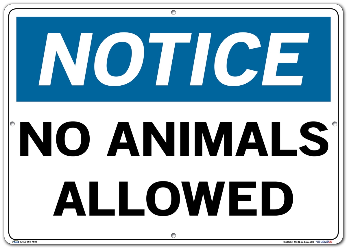 Vestil SI-N-57-E-AL-080 Notice Sign Aluminum .080" Overall Size 20.5"W x 14.5"H No Animals Allowed , 14.5" Height, 20.5" Wide, 0.08" Length
