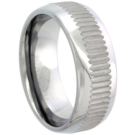 8mm Tungsten 900 Wedding Ring Coin Edge Center Dome Polished Finish Comfort fit, sizes 7 - 14
