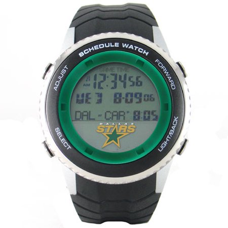 Enjoy this watch featuring the NHL's Dallas Stars. A great collector's piece for all Dallas Stars fans!<P>The All New Schedule Watch<P>FEATURES<BR>The "Coolest Sports Watch Ever" just got better! <P><UL><LI>Introducing the new 3rd generation Schedule Watch, only from Game Time. <LI>The Schedule Watch is the only watch in the world that keeps you in touch with the Dallas Stars. <LI>Using Game Time's patented technology, each watch comes preprogrammed with your favorite sport's schedule displaying upcoming games, locations, and start times. It even plays a melody at the start of each game as a reminder. The NASCAR version includes a stopwatch that calculates a driver's speed in m.p.h., and includes TV network information so you'll never miss another race. <LI>Now, with new technology never before available in a Schedule watch, the new 3rd generation allows you to update your Schedule Watch directly off the internet each season. Just hook up the custom designed USB connector and download the next season's schedule. It's that easy. <LI>With the Schedule Watch you'll always know when its GAME TIME! </UL><P>Frequently Asked Questions:<UL><LI>Q: Do I have to purchase the schedule for my newly purchased watch?<BR>Brand new schedule watch purchases include one schedule. <LI>Q: What if I need to update my watch with a new schedule?<BR>You can purchase a new schedule at the time of downloading. <LI>Q: Do I need a computer to update my schedule? <BR>Yes. You will need a PC with a USB po