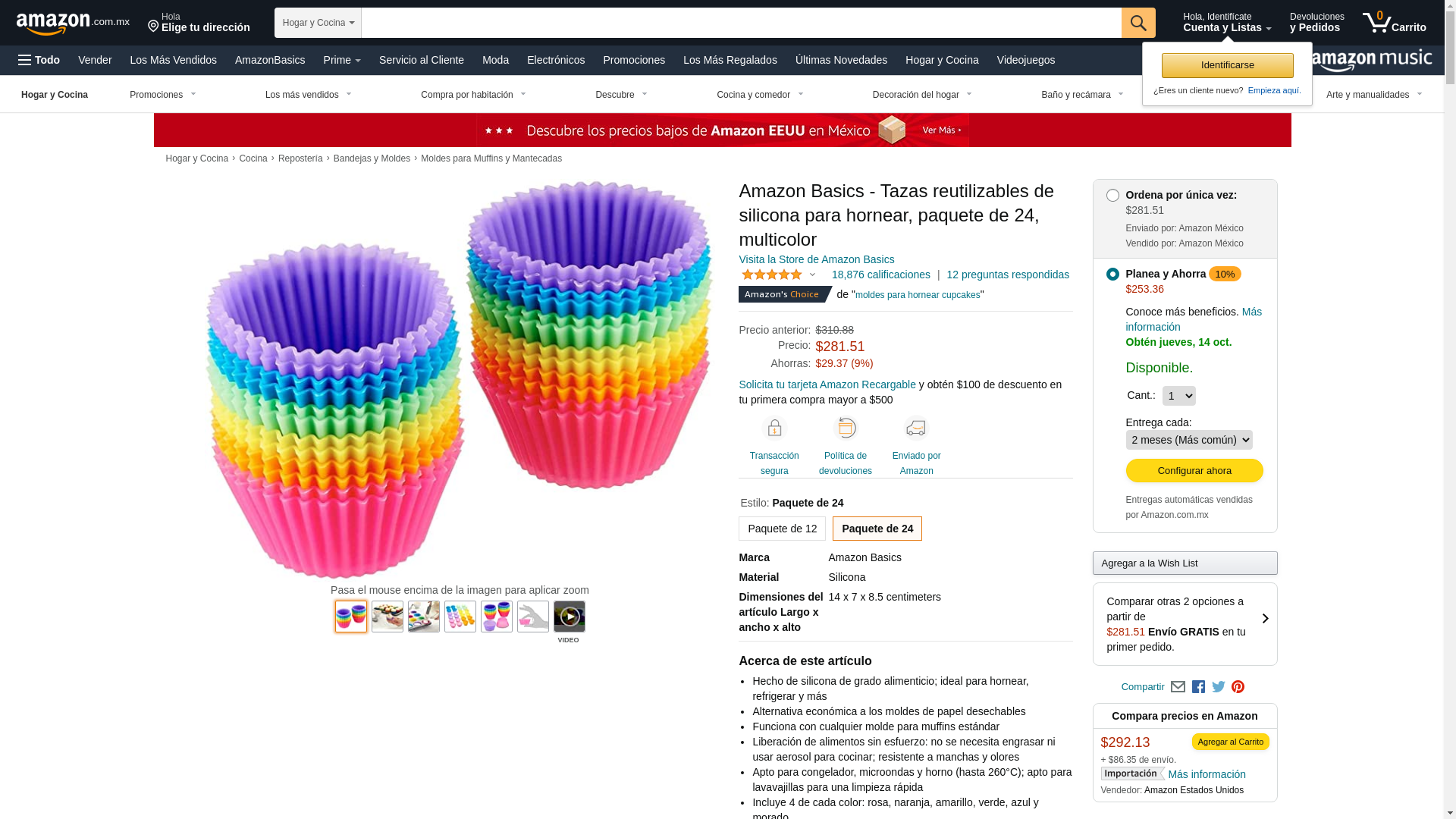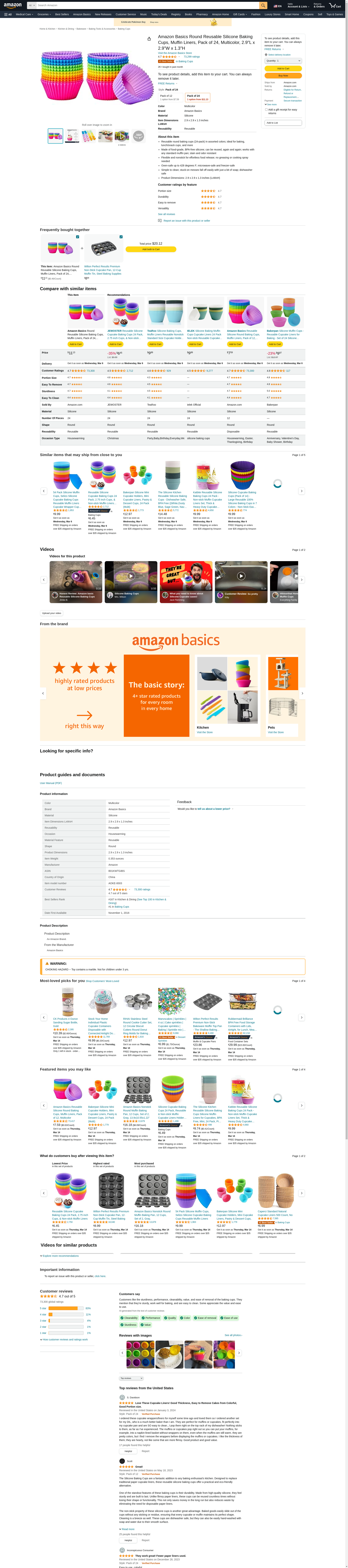 Amazon Basics Round Reusable Silicone Baking Cups, Muffin Liners, Pack of 24, Multicolor, 2.9" x 2.96" x 1.3"