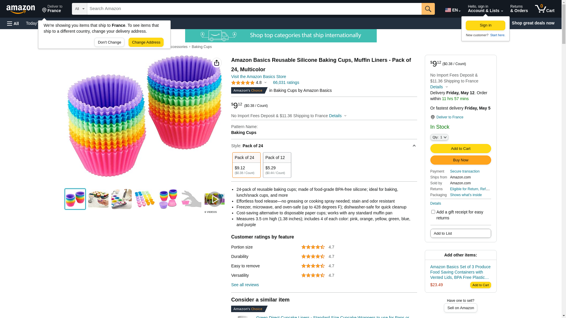 - 24-pack of reusable baking cups; made of food-grade BPA-free silicone; ideal for baking, lunch/snack cups, and more