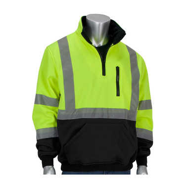 PIP Class 3 Quarter Zip Pullover Lime Green with Black Bottom 323-1330B - Jendco Safety Supply