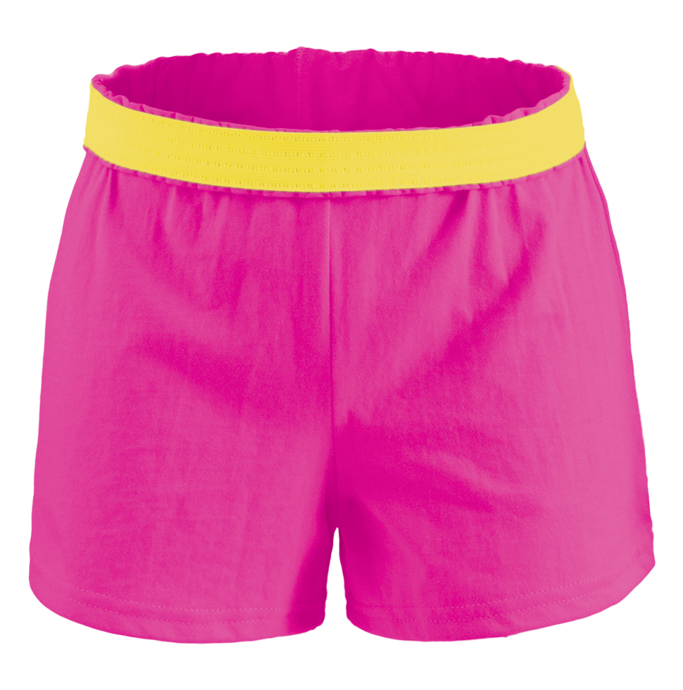 Soffe M037E6ZKXSM 3 in. 7 oz Elastic Camp Short Jersey for Junior, Pink Glo & Neon Yellow - Extra Small
