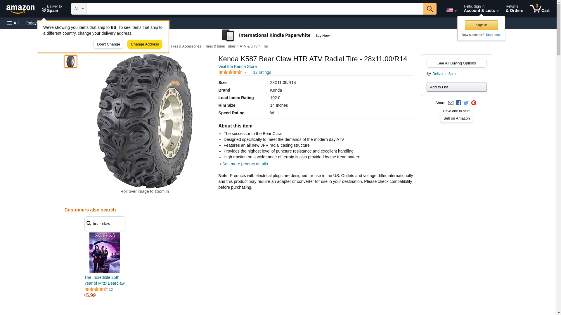 Position: Front/Rear<br>Rim Size: 14<br>Tire Application: All-Terrain<br>Tire Construction: Radial<br>Tire Ply: 8<br>Tire Size: 28x11x14<br>Tire Type: ATV/UTV<br><br>The successor to the Bear Claw.<br> Designed specifically to meet the demands of the modern day ATV.<br> Features an all new 8PR radial casing structure.<br> Provides the highest level of puncture resistance and excellent handling.<br> High traction on a wide range of terrain is also provided by the tread pattern.<br> Low vibration and a smoother ride are provided by an all new center knob design.<br> Has tall knobs to dig into the dirt and mud.<br> Knobs are spaced apart to push the dirt away and self clean.<br> The use of the tire and other vehicle data and information accessible through this webpage is limited to persons located in the United States of America and Canada.ALTHOUGH THE DATA IS BELIEVED TO BE ACCURATE, NO WARRANTY OR GUARANTEE IS MADE REGARDING THE QUALITY OR ACCURACY OF THE DATA.All data should be verified by a tire professional, the vehicle placard (typically located on an inside door panel or on frame), and/or the vehicle owners manual..