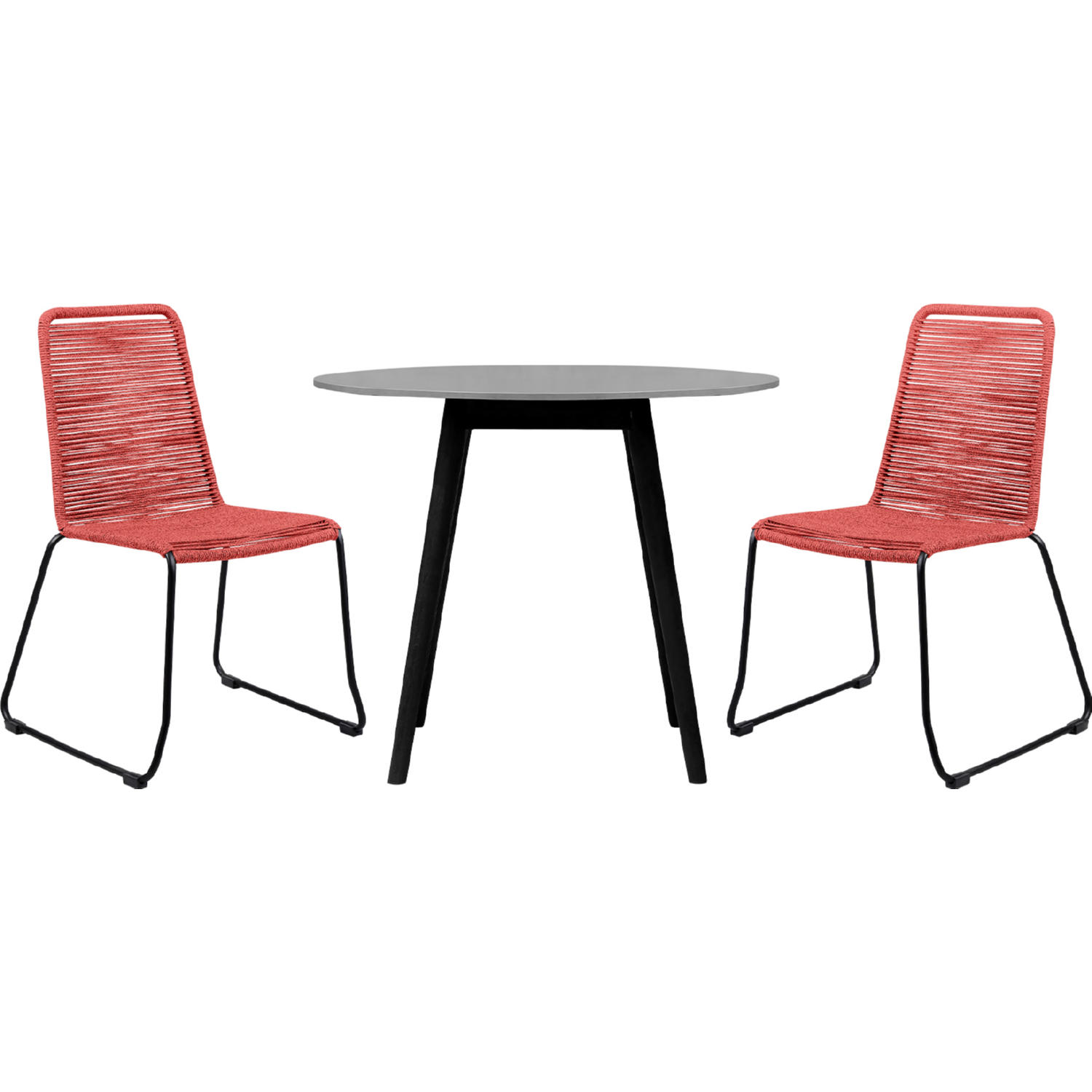 Armen 840254336438 Sydney & Shasta 3 Piece Outdoor Dining Set in Black Eucalyptus & Brick Red Rope