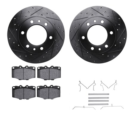 Dynamic Friction Company Front Brake Rotors Drilled and Slotted Black with 5000 Advanced Brake Pads includes Hardware - 8512-76011