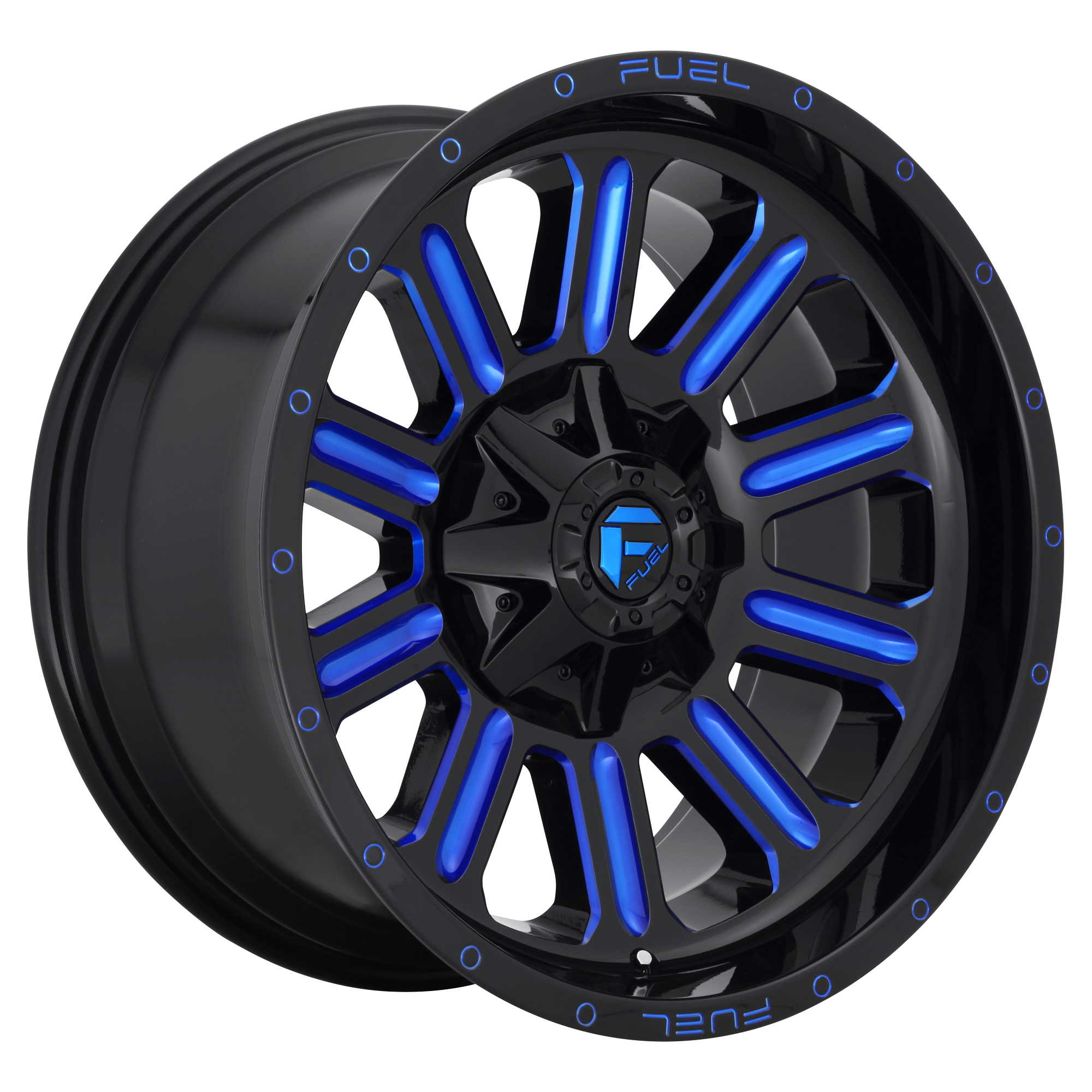 Set of 4: Fuel D646 Hardline Wheel, 20x12.0 -45 Offset 6x135/6x139.7, Gloss Black Blue Tinted Clear - D64620209846