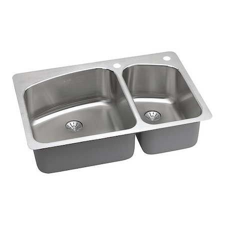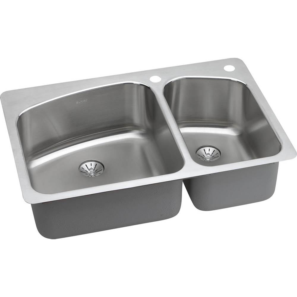 Elkay Lustertone LKHSR2509RPD0 60/40 Double Bowl Dual Mount Stainless Steel Sink with Perfect Drain