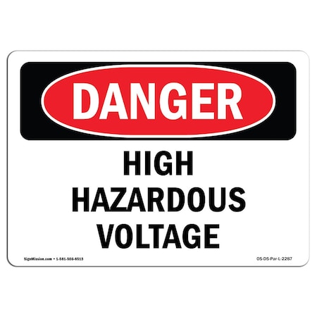 OSHA Danger Sign, High Hazardous Voltage, 14in X 10in Decal