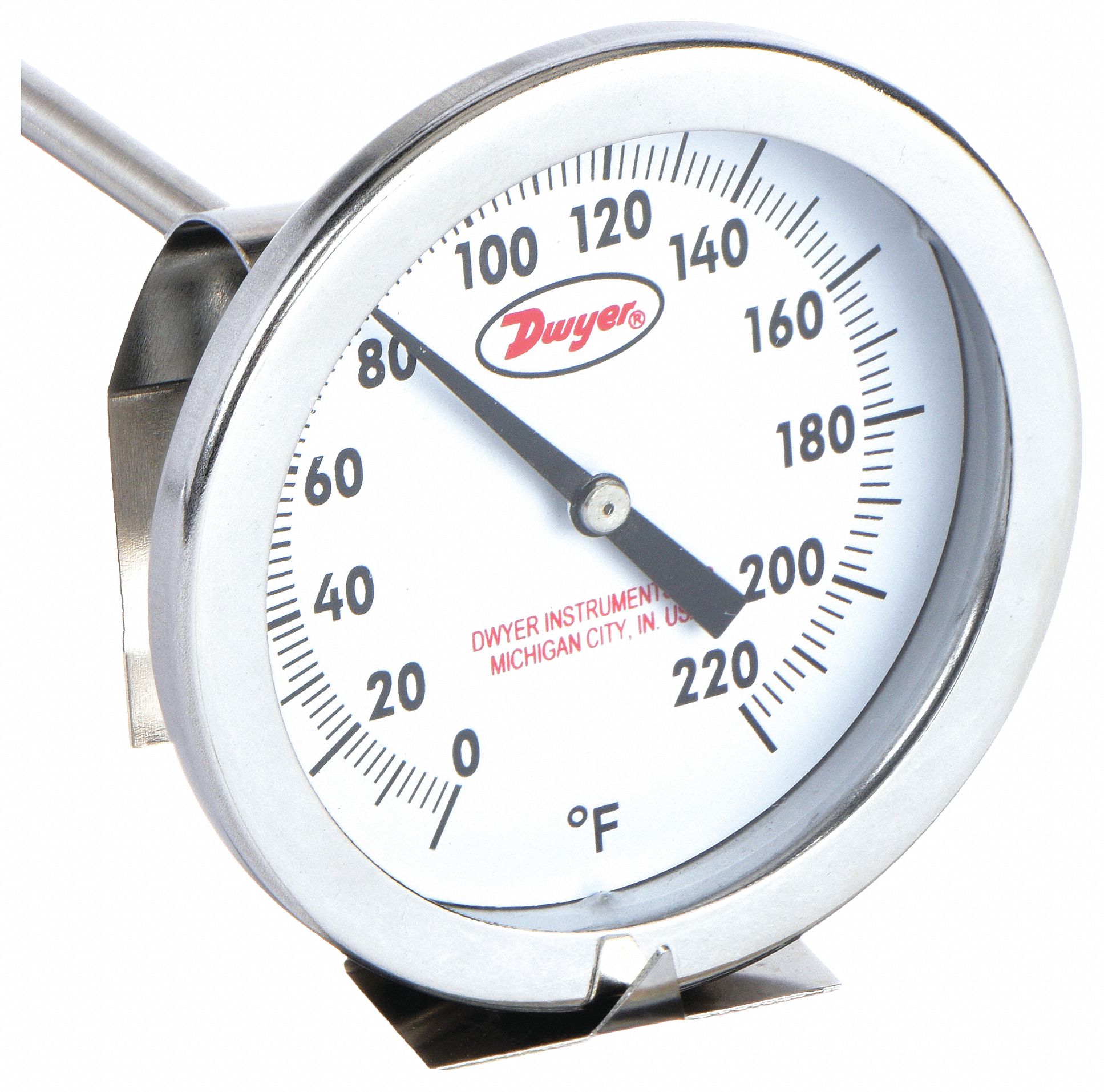 | Feature | Price For: Each Accuracy: +/-1% Case Material: Stainless Steel Connection Location: Back Item: Clip On Dial Thermometer Window Material: Glass Case: Hermetically Sealed Stem Material: Stainless Steel Sensing Element: Bimetal Stem Dia.: 1/4" Manufacturers Warranty Length: 1 yr. Temp. Range (F): 50 Degrees to 300 Degrees Dial Size: 1-3/4" Stem Length: 5" |