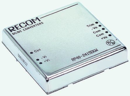 Recom Power Isolated Board Mount Dc/dc Converter, Dip, Through Hole, Fixed, 75 V, 18 V, 2 Rohs Compliant: Yes - RP40-4815DGW