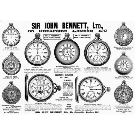 Pocket Watches 1896 Nadvertisement For Pocket Watches Designed By Sir John Bennett Of London Line Engraving 1896 Poster Print by Granger Collection