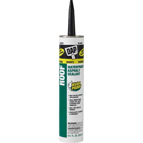 DAP ROOF ASPHALT FILLER SEALER is a high performance, waterproof, asphalt-based sealant for sealingroof gaps and joints, spotting shingles and repairing minor roof leaks. DAP ROOF ASPHALT FILLER SEALER model 7079818268 forms a durable, flexible, weather resistant and waterproof seal and can be used for both wet and dry applications. Long-lasting, weatherproof seal. Can be used for wet or dry applications including emergency leak repairs. Will not run or bubble. Exterior Use. 10.1 oz, Black. WARNING: This product can expose you to chemicals known to the State of California to cause cancer. For more information, go to: www.P65Warnings.ca.gov.